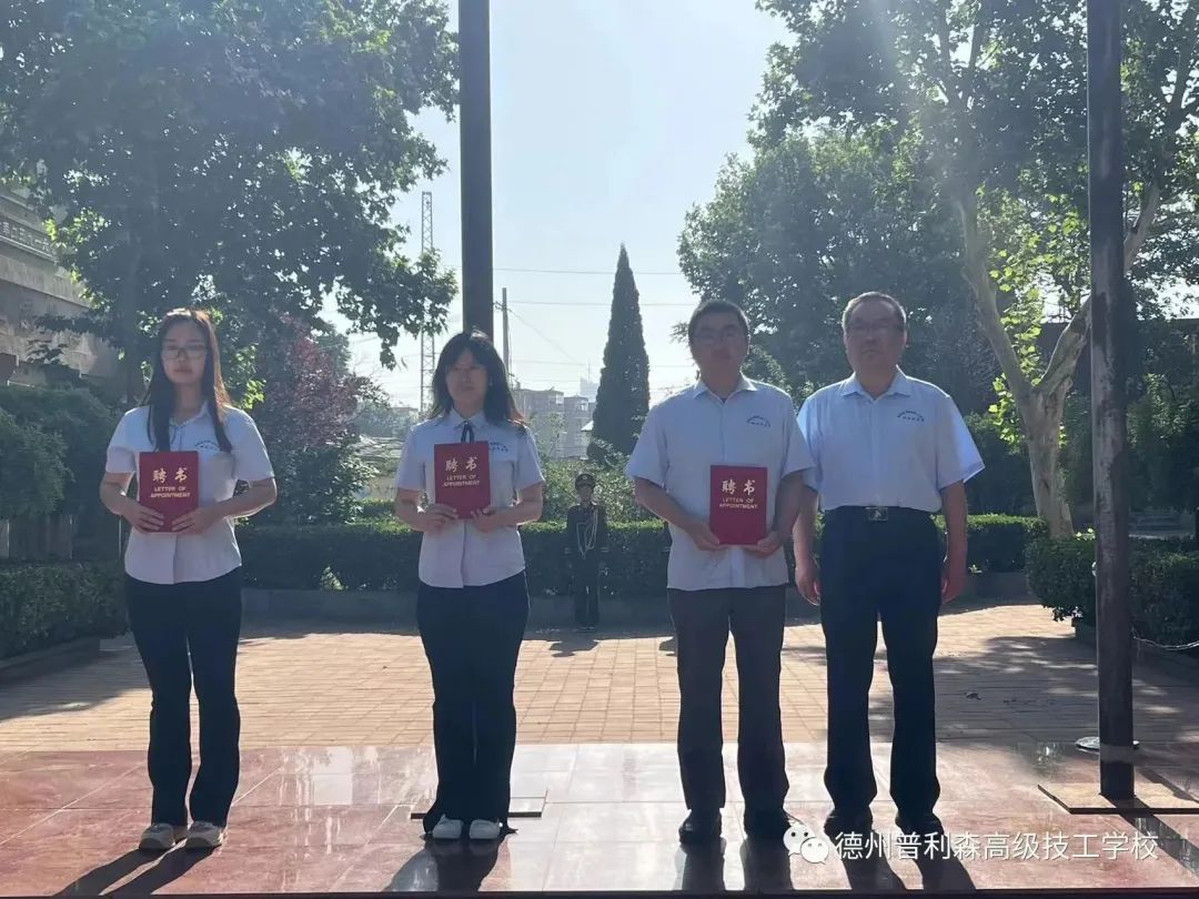 德州普利森高级技工学校校长金克浩为教师石翠芳、隋明香、屠红剑颁发高级职称讲师证书